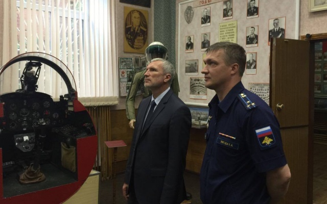 Знакомство с ВВАУЛ началось с осмотра замечательного музея боевой славы. Затем состоялась встреча с командирами Борисоглебского высшего военного авиационного училища летчиков им. В.П.Чкалова.