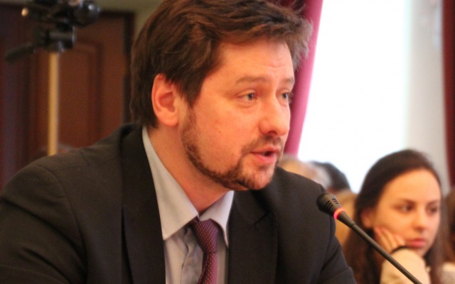 Следующим выступающим стал  Евгений Шелкопляс - почетный доктор философских наук, член экспертного совета при комитете по взаимодействию с институтами гражданского общества Ивановской областной Думы. Свой доклад он посвятил мировоззренческим вопросам формирования экономической модели Запада и России.