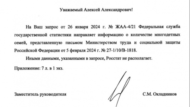 Председатель партии "РОДИНА", депутат Госдумы Алексей Журавлев ранее направил запрос в Росстат, чтобы там объяснили, сколько многодетных семей, пользующихся льготами и привилегиями у нас в стране, своими детьми обзавелись за ее пределами.