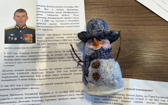 "Получил от Данилы - сына Героя России, Александра Досягаева, уроженца села Никифоровка Тамбовской области - вот такого снеговичка к Новому году", - написал в своем телеграм-канале председатель партии "РОДИНА", депутат Госдумы Алексей Журавлев.