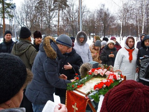 8 апреля активисты партии "РОДИНА" из СВАО г. Москвы приняли участие в молебне, организованном настоятелем будущего храма, названного в честь собора новомученников и исповедников российских.