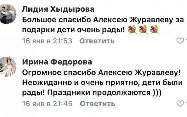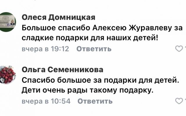 В канун Старого Нового года Алексей Журавлев порадовал детвору сладкими подарками.