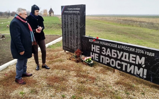 В продолжение поездки Радинович вместе с заместителем министра иностранных дел ЛНР Анной Сорокой приехали к монументу в Донецке, посвященному памяти всех частей и соединений, освобождавших Донбасс во время Великой Отечественной войны, и почтили память жертвам украинской агрессии 2014 года. На сегодняшний день это главный памятник военной истории города и области.