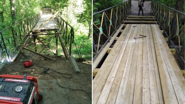 Избиратели просили сделать на территории «Соснового бора» ремонт ведущих в парк трех пешеходных мостиков в районе домов №№ 9/1, 23/1 и 33 по улице Александра Невского. Эти пешеходные мостики через лог находились в аварийном состоянии и не отвечали требованиям безопасности.
