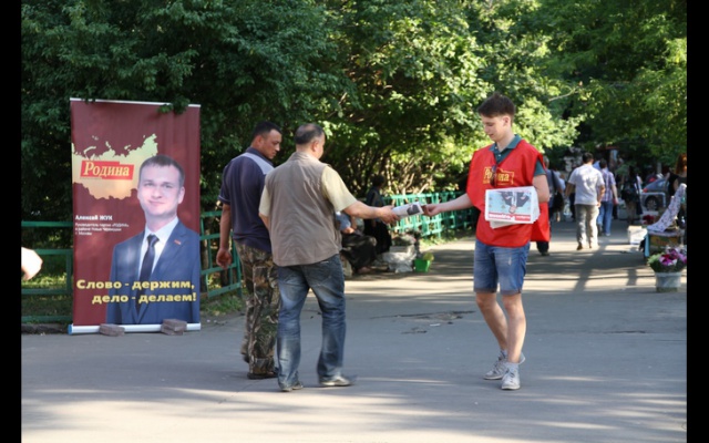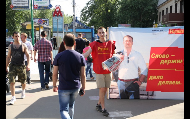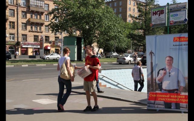 5 мая около метро выходов из метро "Университет", "Академическая", активисты партии "РОДИНА" организовали раздачу газет, посвящённых деятельности партии и руководителю её районного отделения в Черёмушках Алексею Жуку.