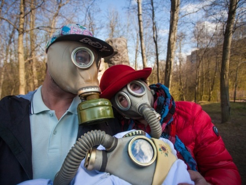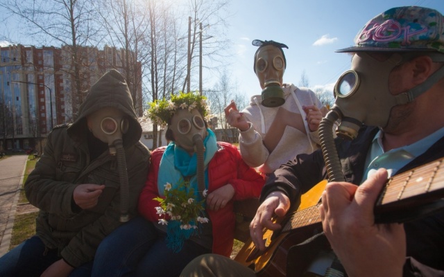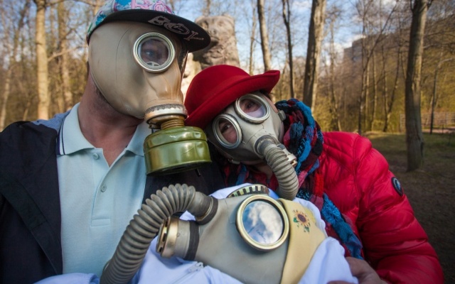 Поддерживаемые Ленинградской "РОДИНОЙ" экоактивисты вышли на прогулку в противогазах