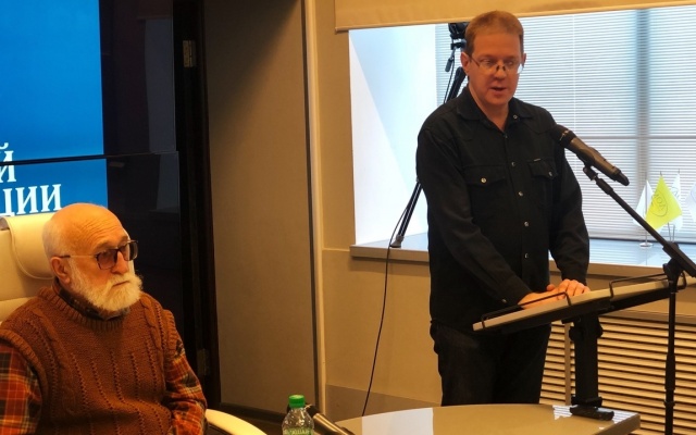 Главный редактор интернет-портала "4Пера" Константин Чаплин говорил о разности интересов СМИ, в том числе, и о личном опыте в работе в «Коммерсанте», «Воронежском курьере» и о сегодняшней деятельности на его же портале «4Пера». Чаплин акцентировал внимание и на минимальном отражении русского вопроса в воронежских СМИ.