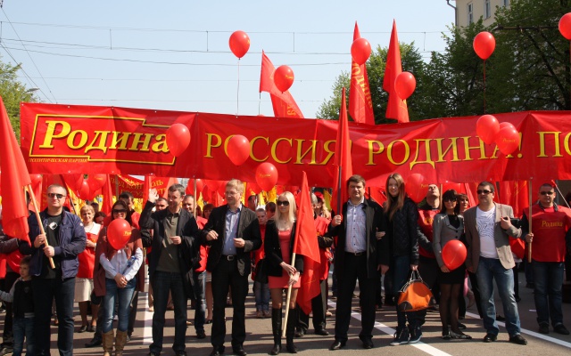 Праздник Весны и Труда Воронежское региональное отделение партии "РОДИНА" отметило патриотическим шествием под лозунгами "Систему ЖКХ – под контроль государства!", "Приехал нелегально - депортируем официально", "Будь готов к труду и обороне!".